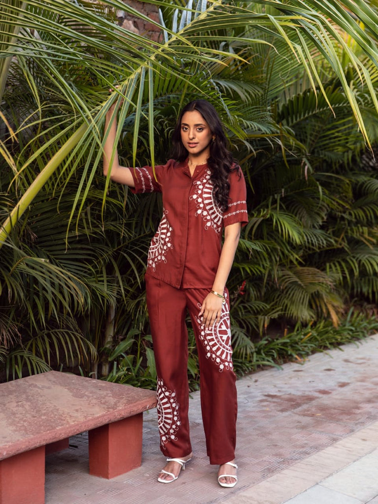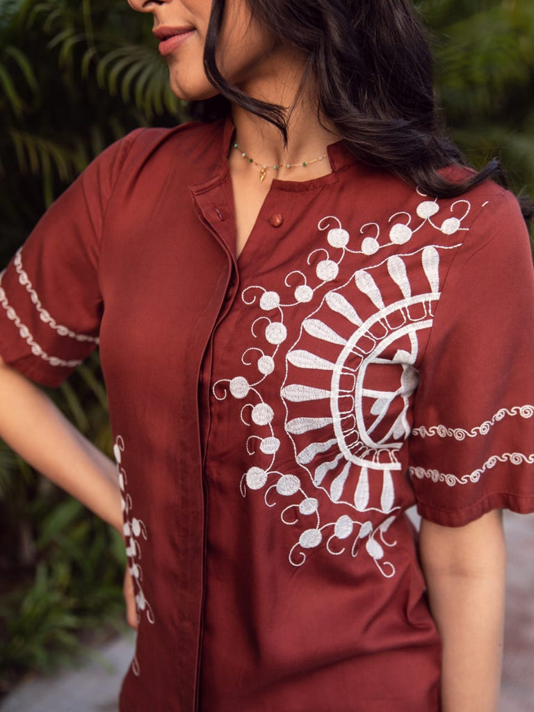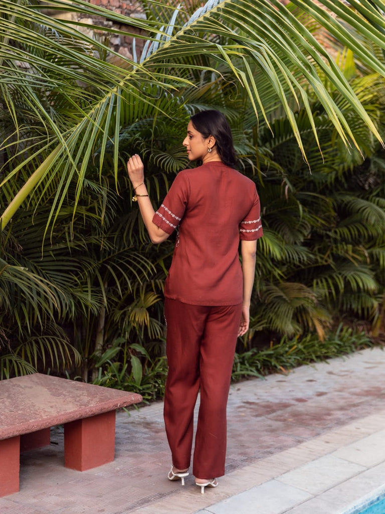 Carol Embroidered Co-Ord Set (Rust)