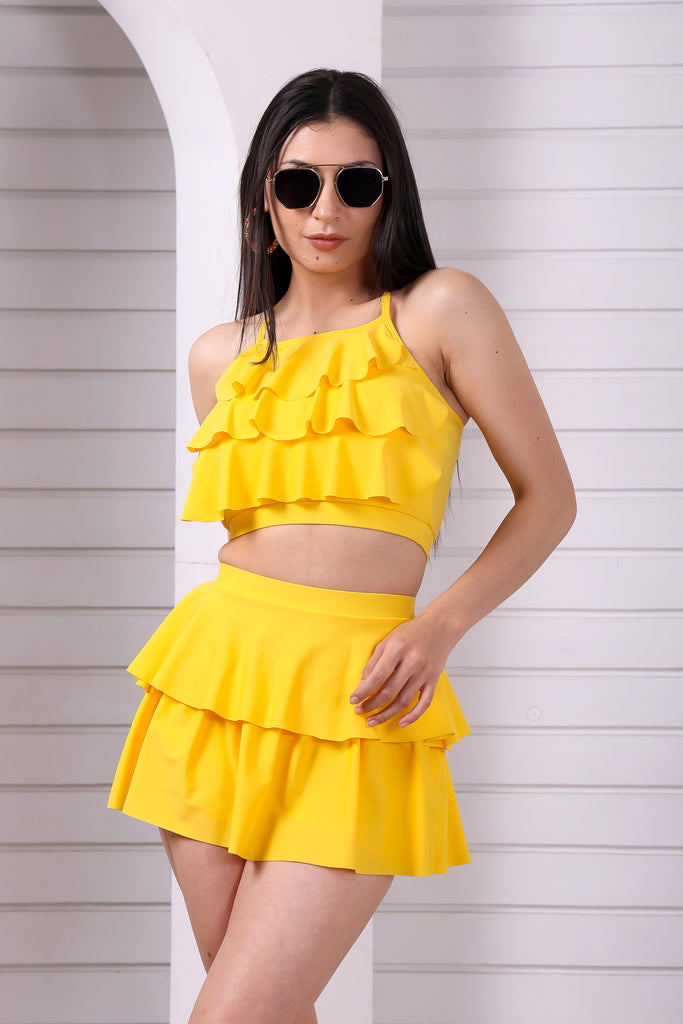 The Ruffled skater skirt has panty shorts inside with an elasticated waist to carefree flaunt your moves on the beach & pool side
