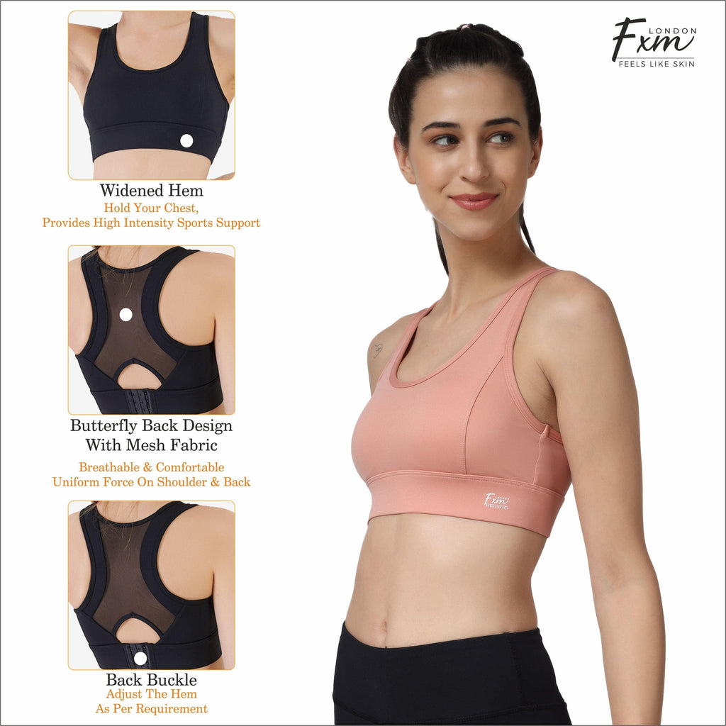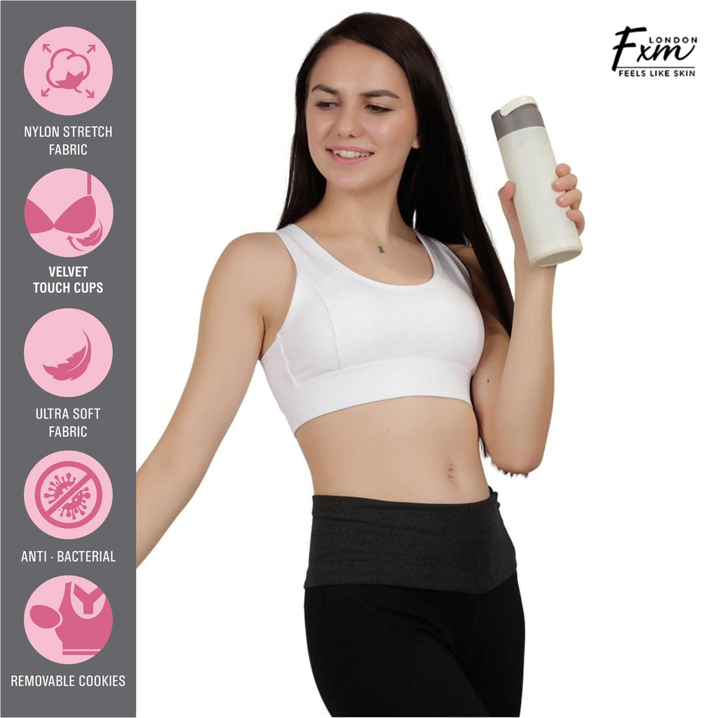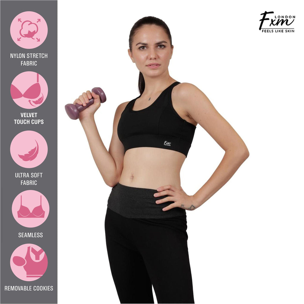 FXM Flexiwear Active Sports Bra for Women & Girls- Gym, Yoga, Running Bra - Wireless, Racer back Zero Bounce Extra Support NY-S0020