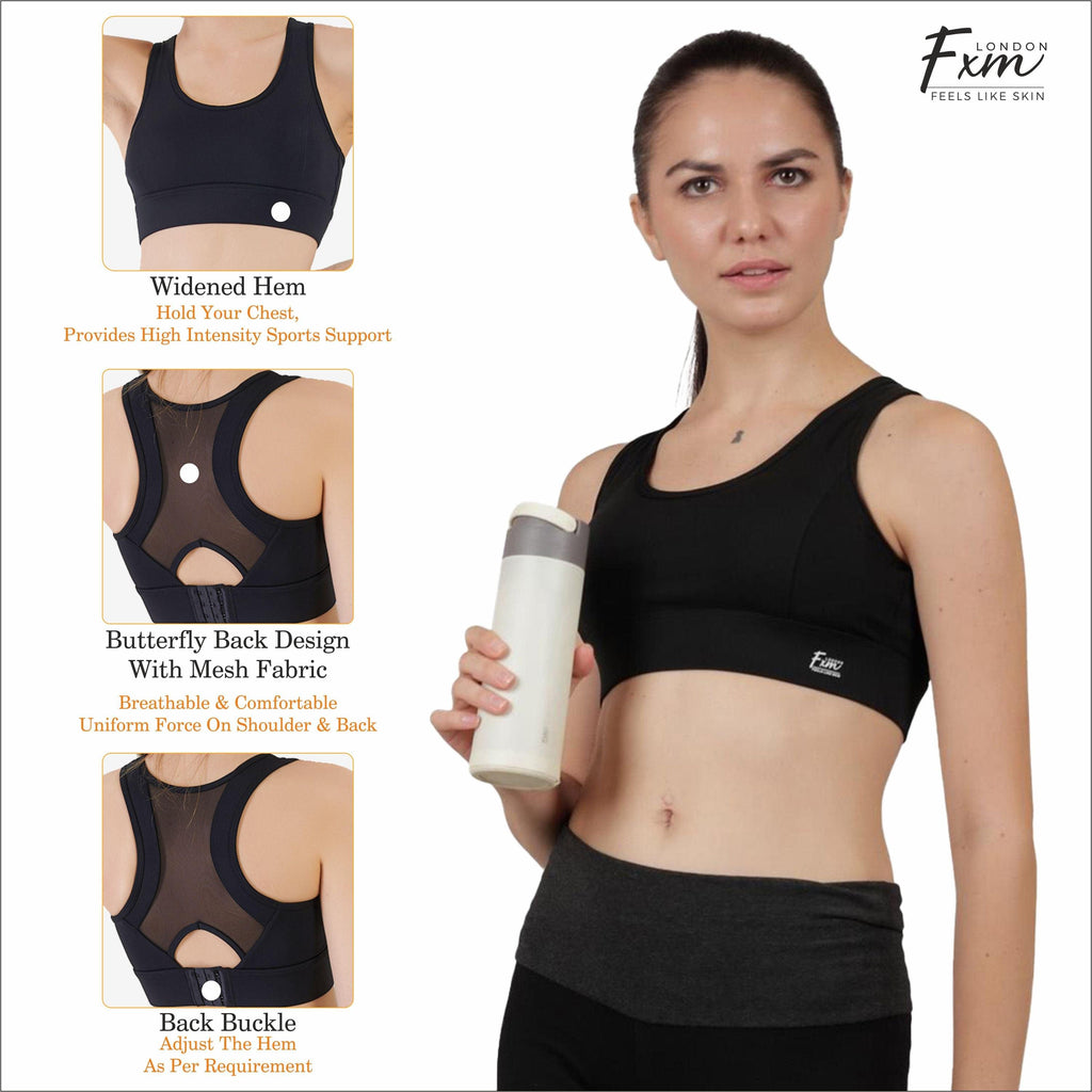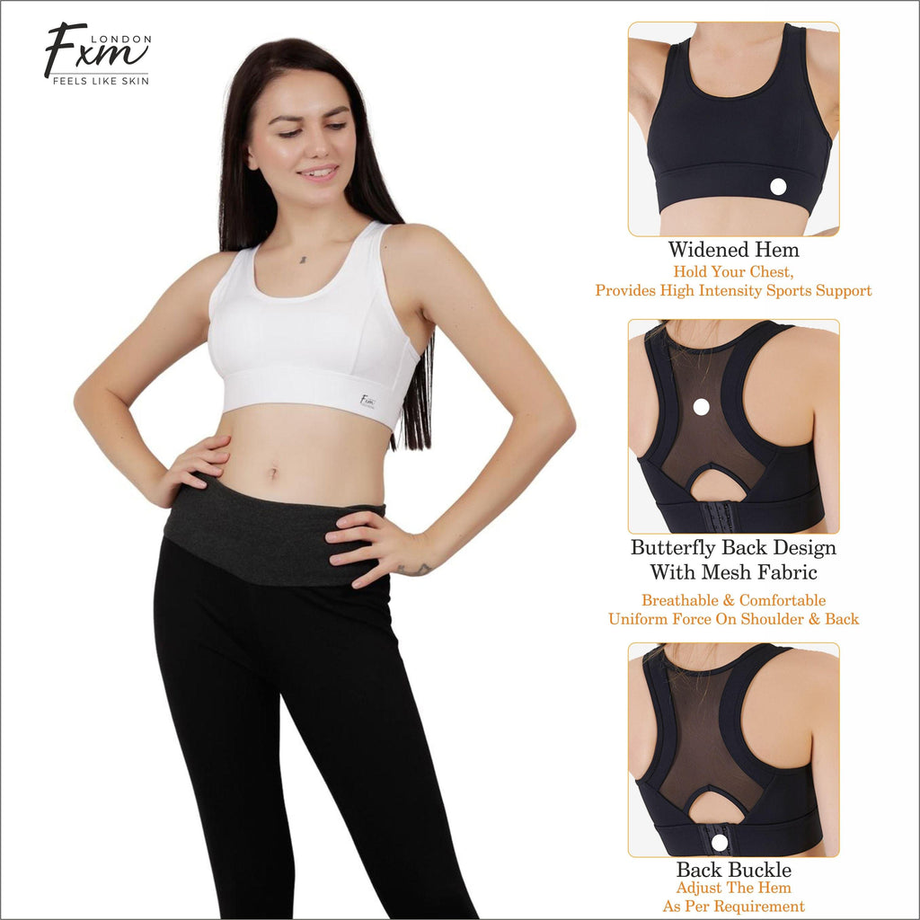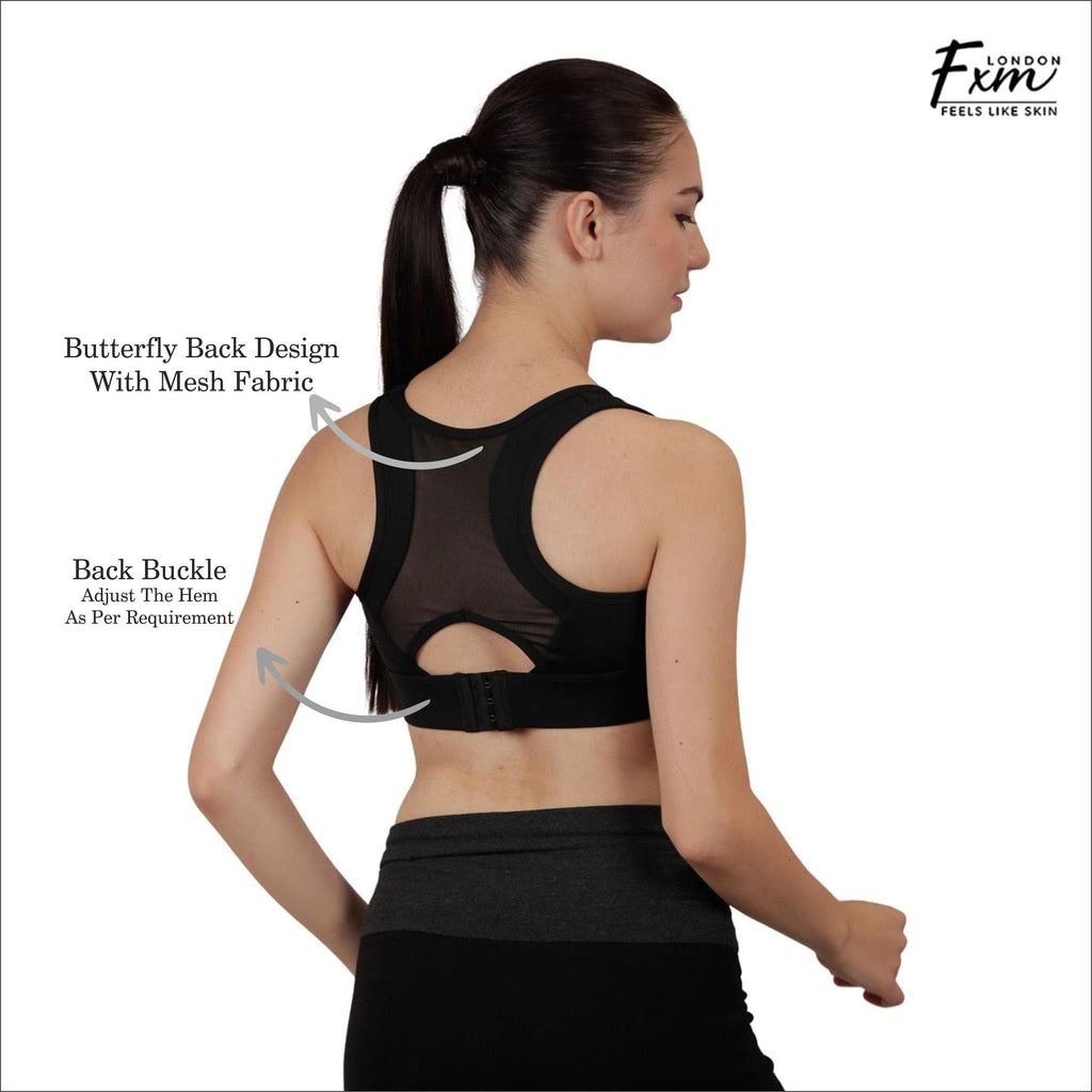 FXM Flexiwear Active Sports Bra for Women & Girls- Gym, Yoga, Running Bra - Wireless, Racer back Zero Bounce Extra Support NY-S0020