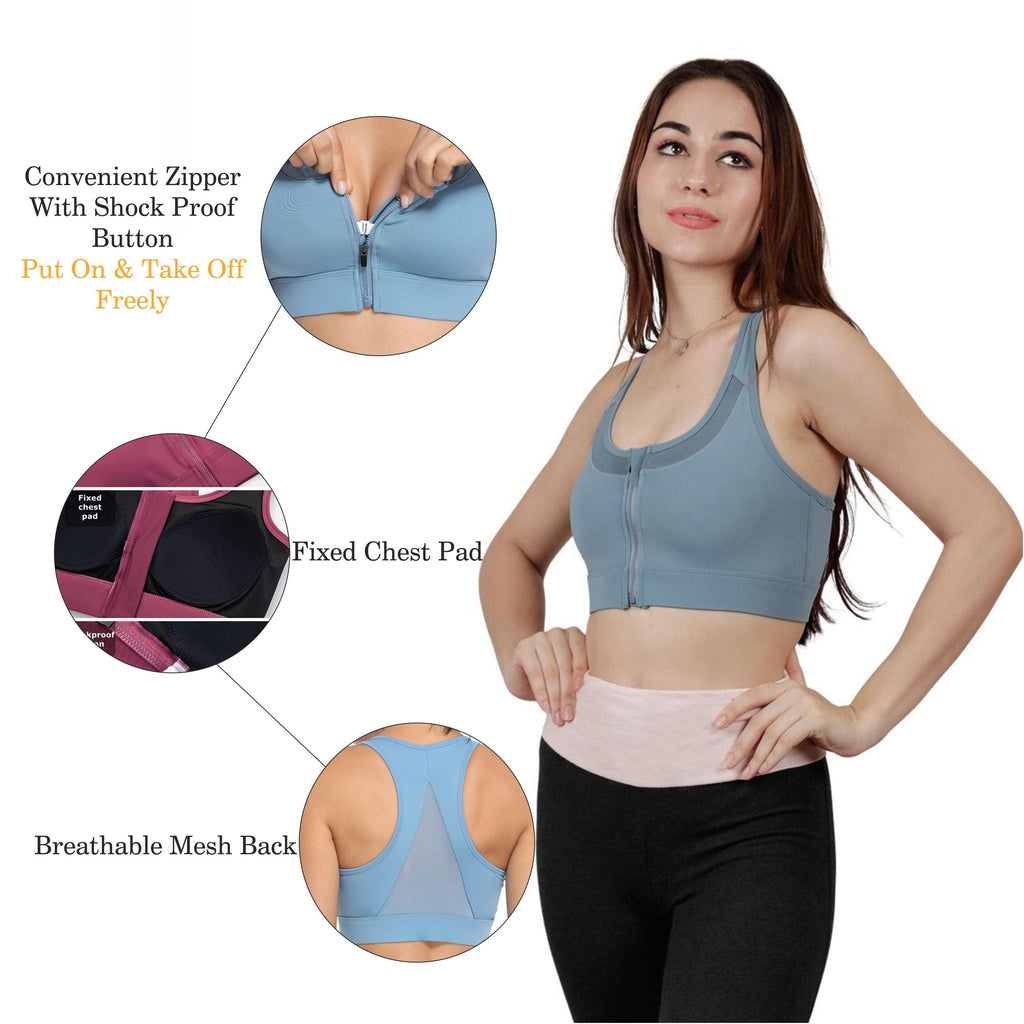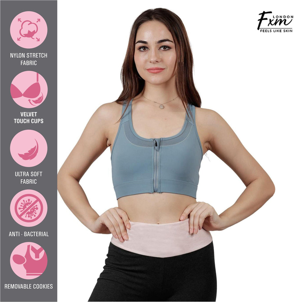 FXM Flexiwear Front Closure Active Sports Bra for Women & Girls- Gym, Yoga, Running Bra - Wireless, Racer back Zero Bounce Extra Support NY-S0023