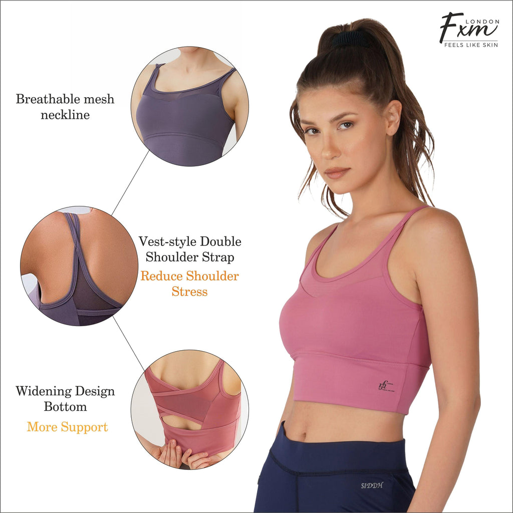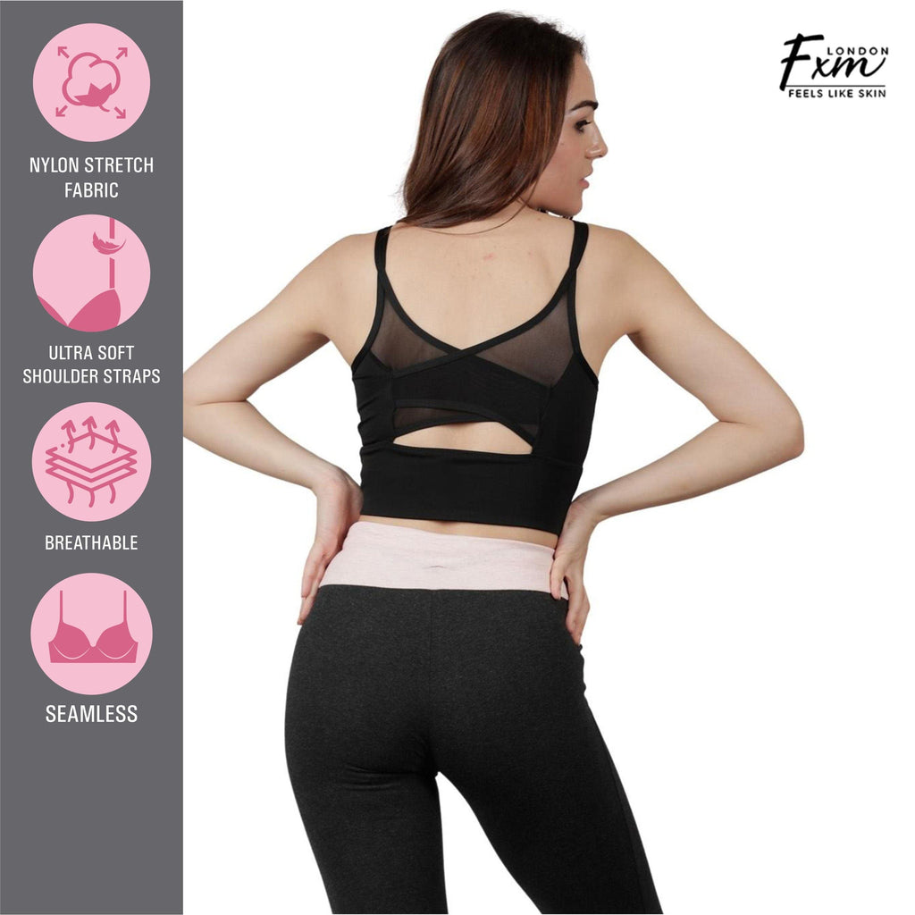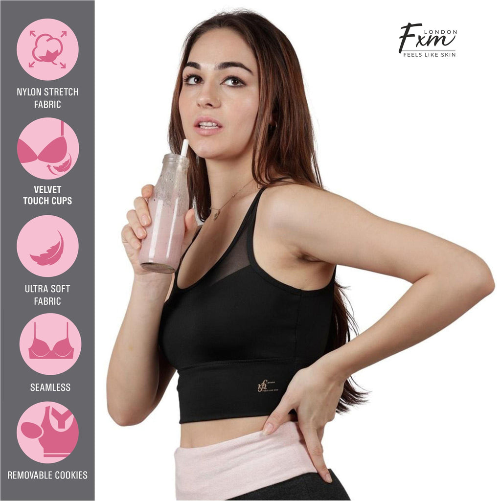 FXM Flexiwear Active Sports Bra for Women & Girls- Gym, Yoga, Running Bra - Wireless, Vest style strap, Zero Bounce Extra Support NY-S0056
