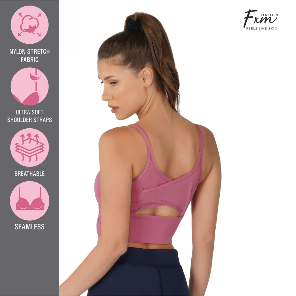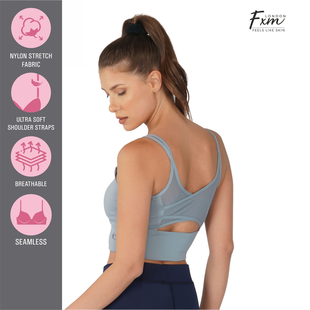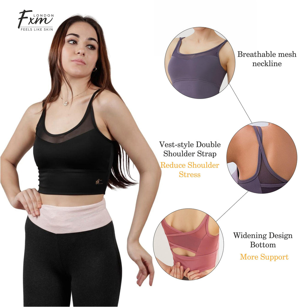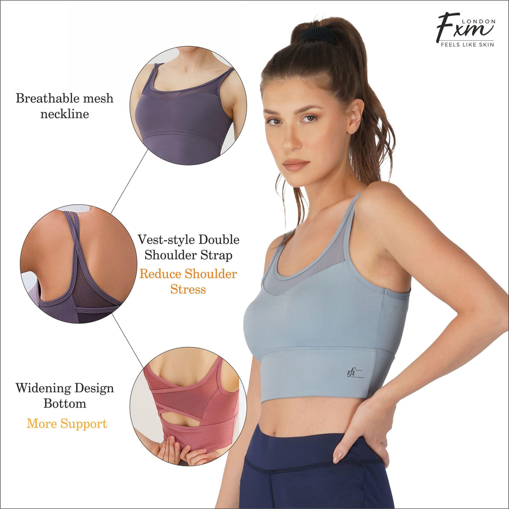 FXM Flexiwear Active Sports Bra for Women & Girls- Gym, Yoga, Running Bra - Wireless, Vest style strap, Zero Bounce Extra Support NY-S0056