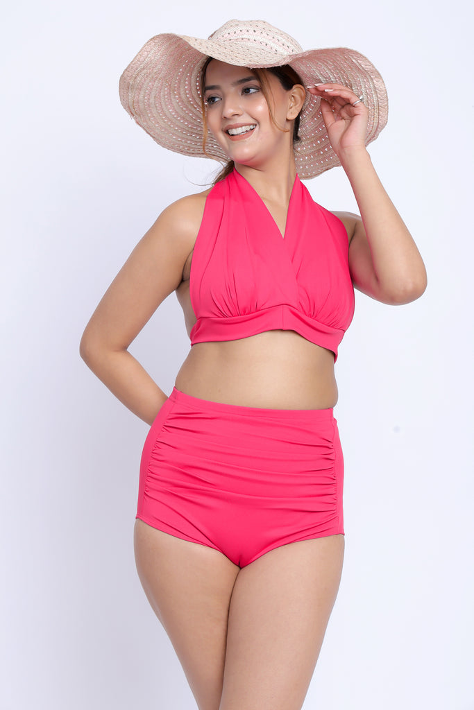 • A slinky V-neck Bikini with slip-on neck along with a high-waist bottom