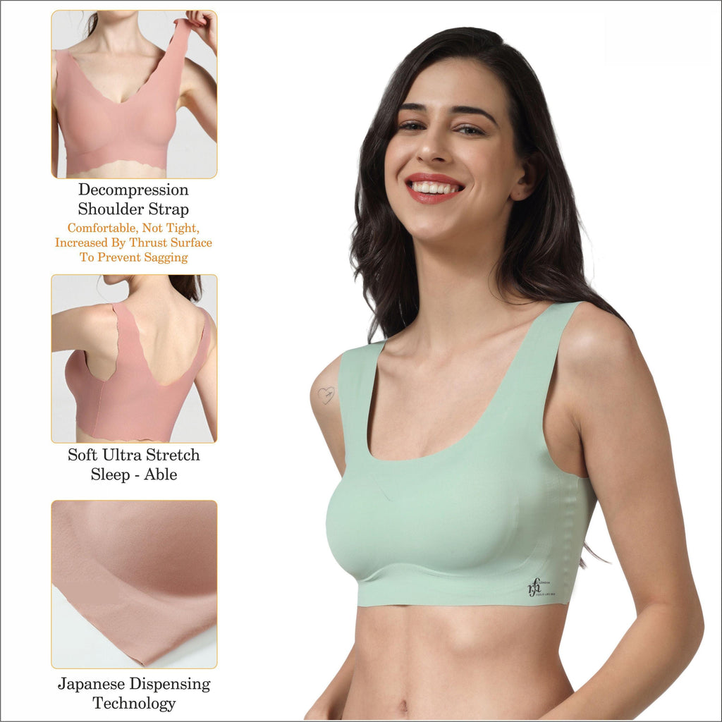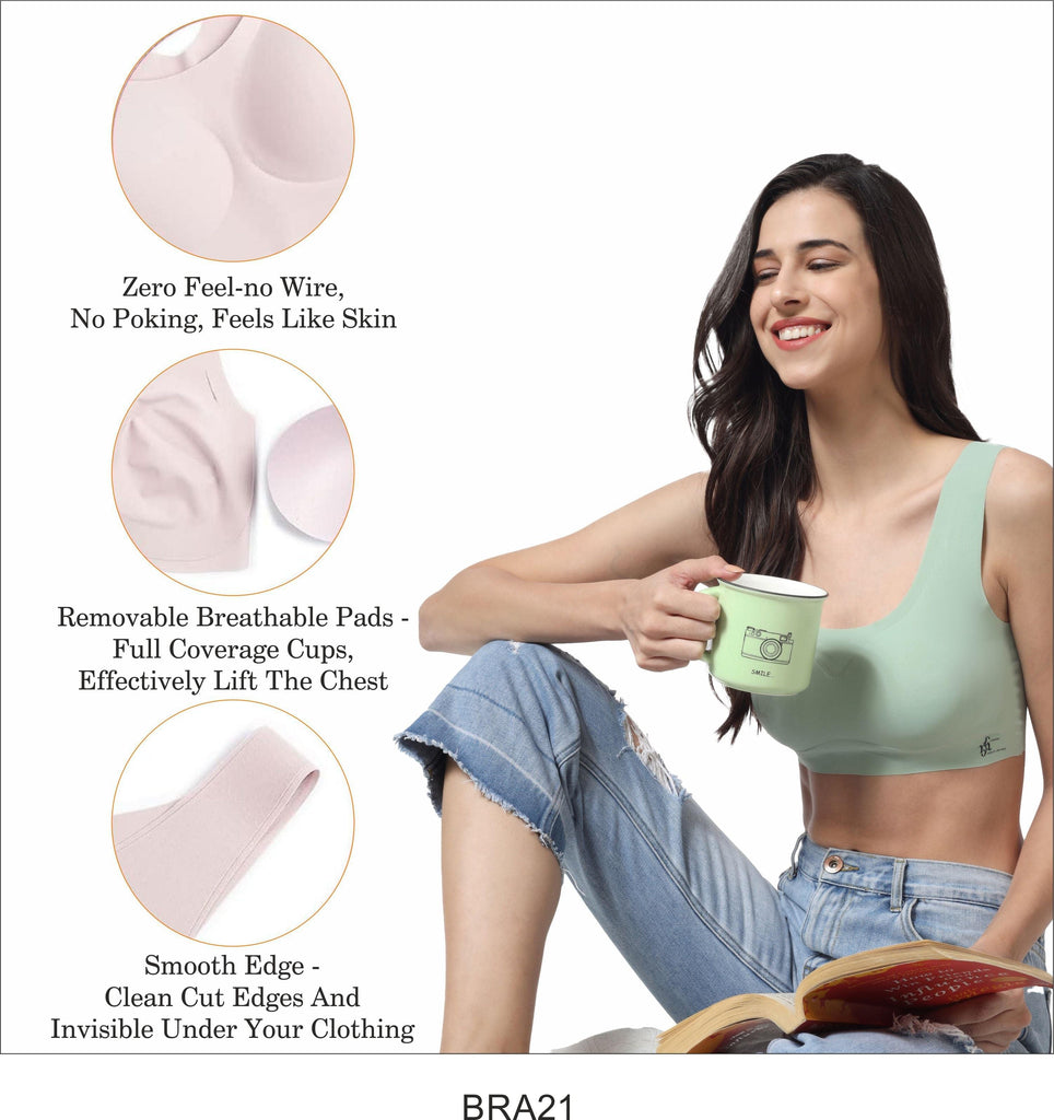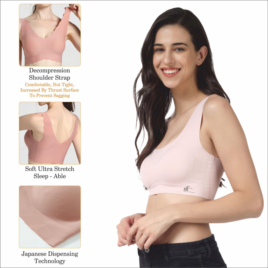 FXM NUDZ Women's Seamless T Shirt Bra - Invisible Wireless Comfort Bra Bralettes for Women with Removable Pads BRA0016