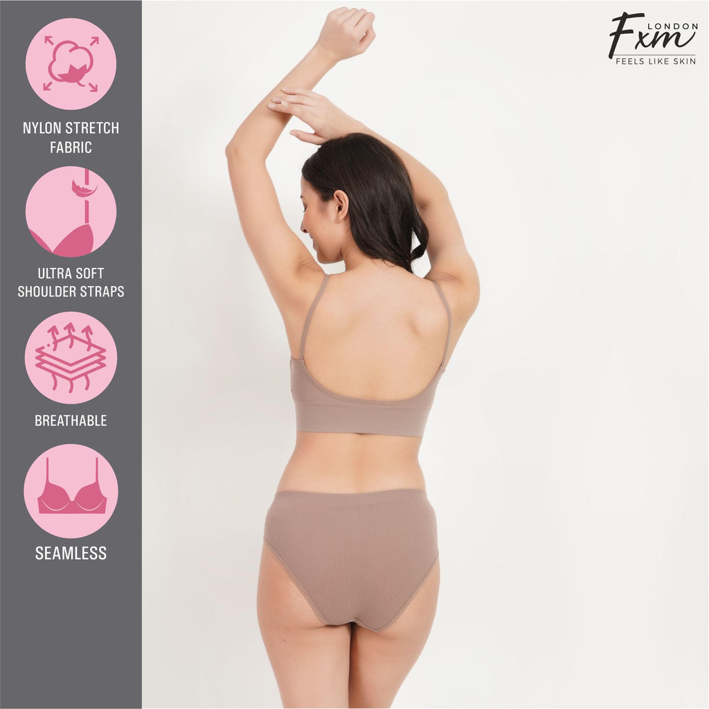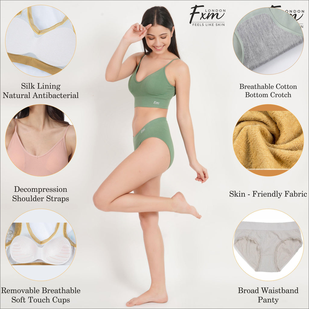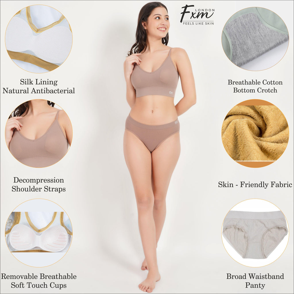 FXM NUDZ Seamless Bra Panty Set for Women Girls Wireless Everyday Lingerie Set with Removable Pads NY-T0011