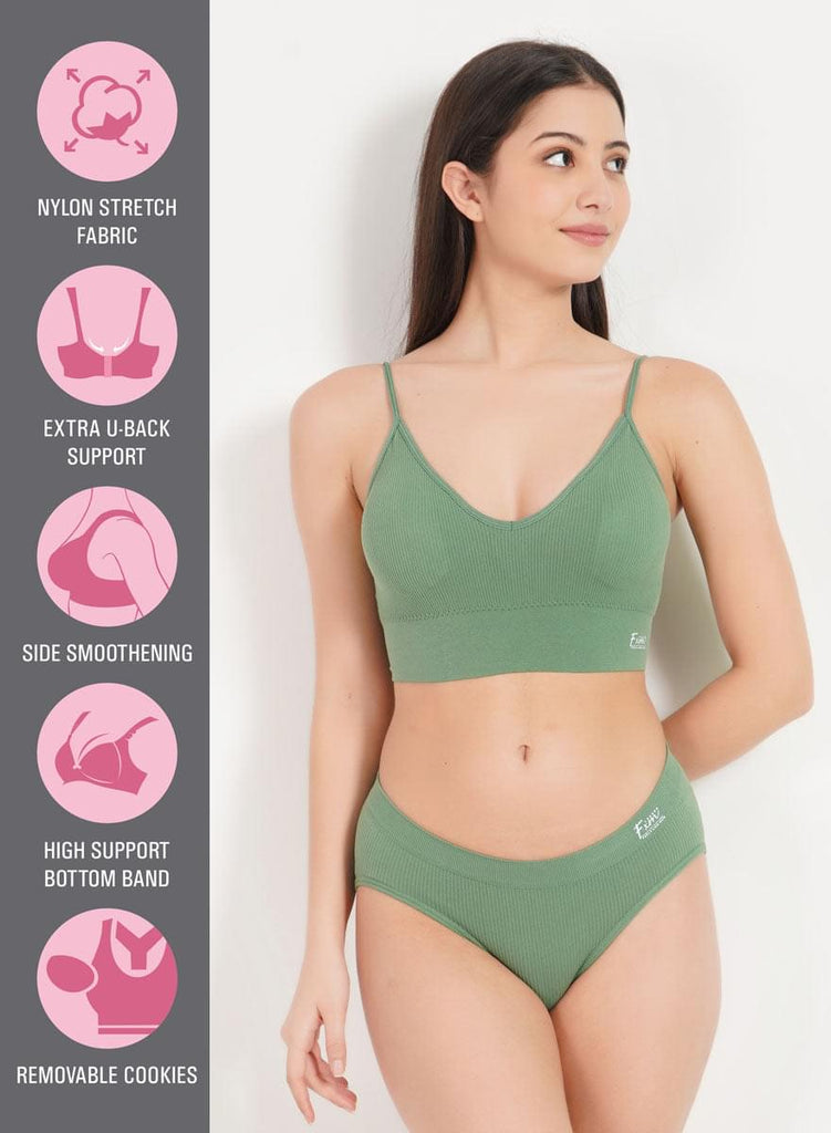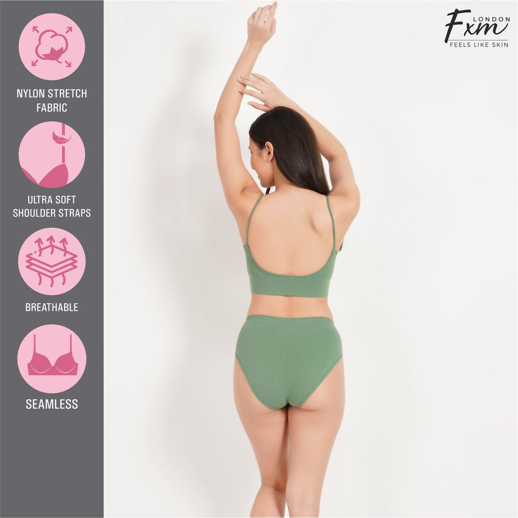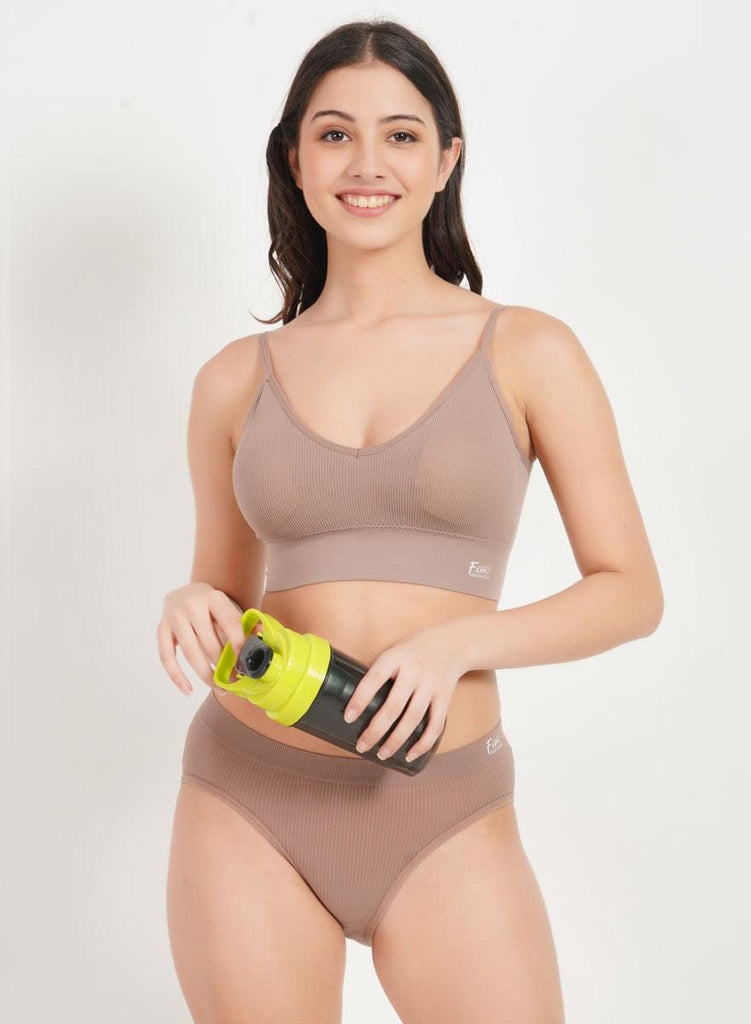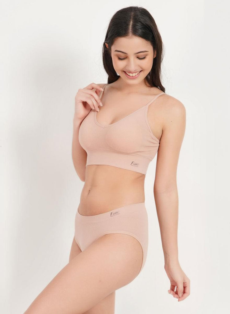 FXM NUDZ Seamless Bra Panty Set for Women Girls Wireless Everyday Lingerie Set with Removable Pads NY-T0011