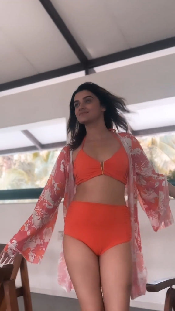 Pallak Yadav in Viola Bikini Set with Robe (SW13 Orange) – FXM LONDON